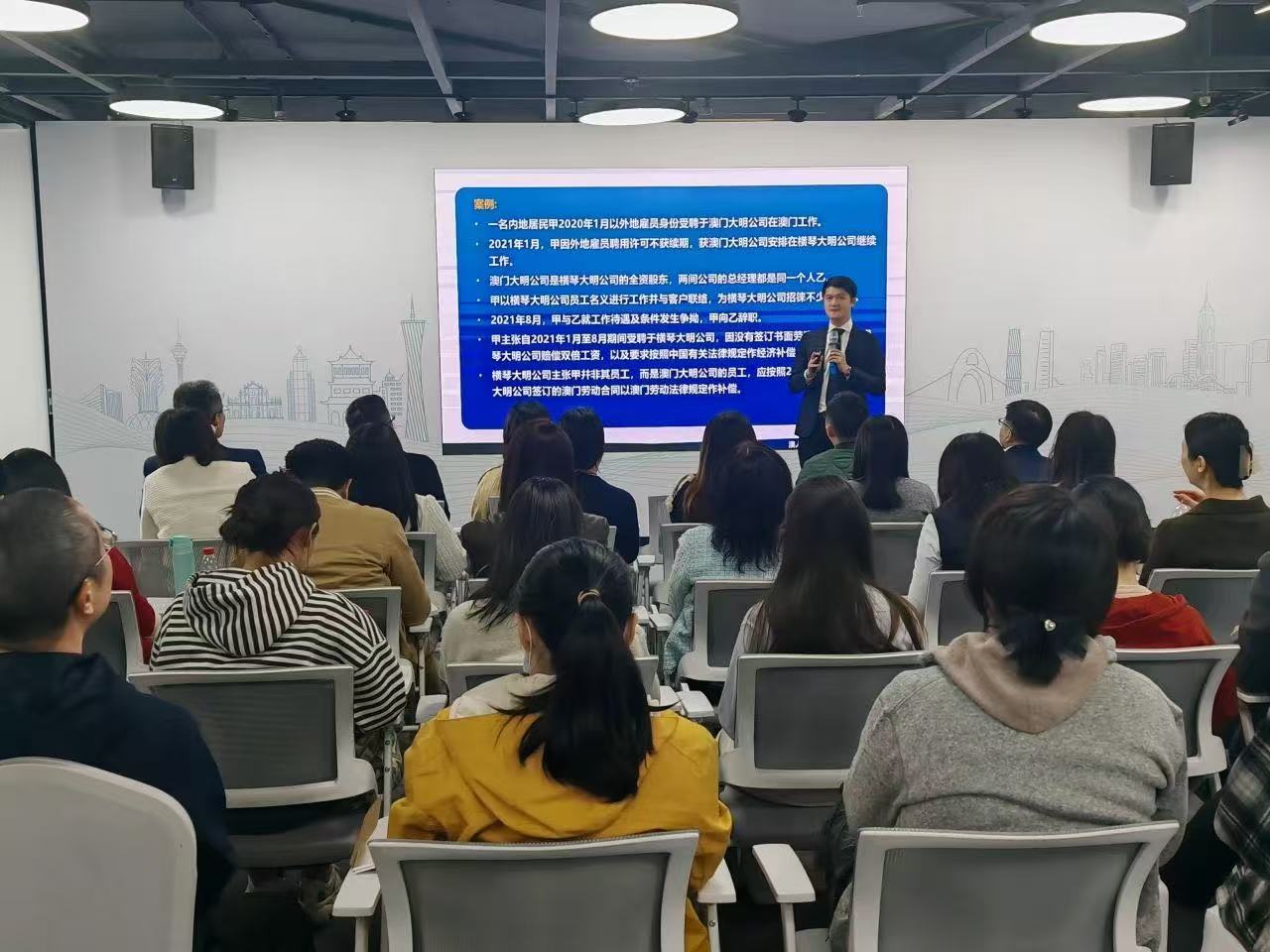 澳门籍大湾区律师黄景禧在粤港澳大湾区跨境劳动关系服务示范中心开展普法讲座